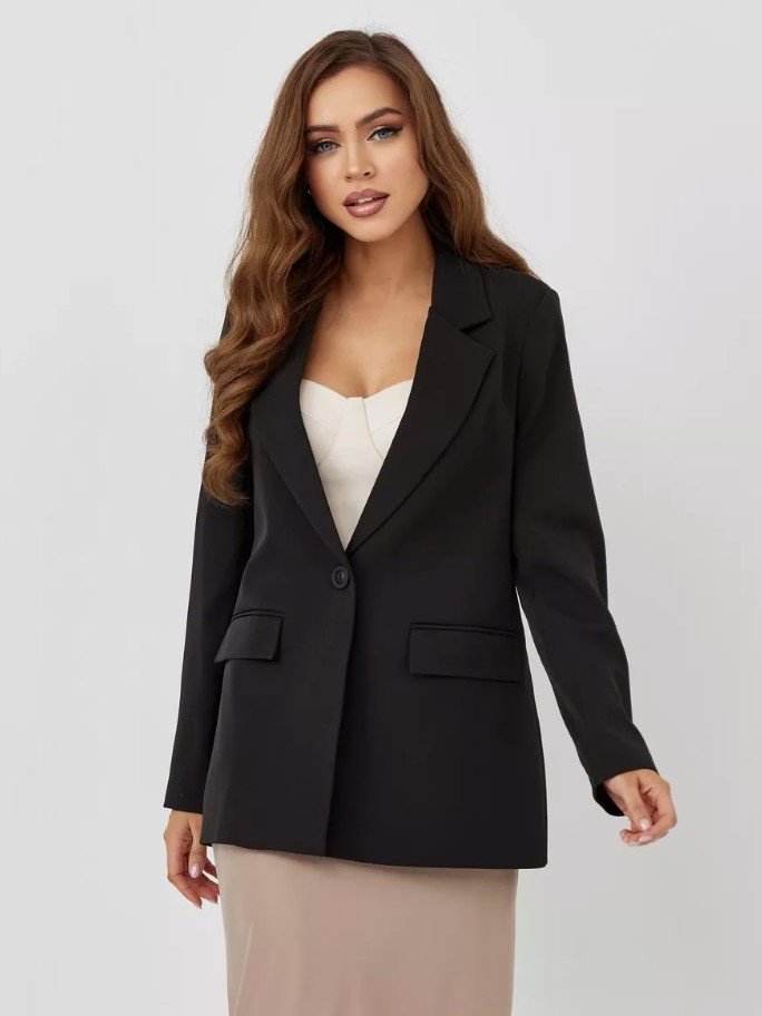 Пиджак женский на одну пуговицу, приталенный пиджак на подкладке. Воротник-шаль, застёжка на одну пуговицу, есть боковые прорезные карманы. Пиджак женский классический, в офис, корпоратив, праздник.